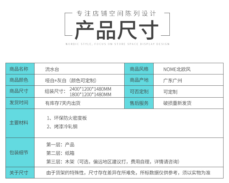產品描述:極簡北歐風,增加儲物量、進店率。采用環保板材+穩定鋼架結構,讓人眼前一亮的感覺。