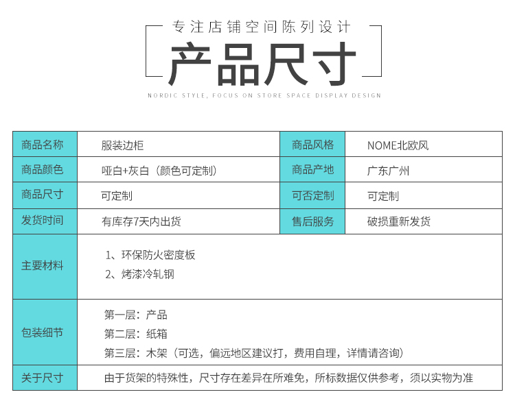 產品描述:極簡北歐風,增加儲物量、進店率。采用環保板材+穩定鋼架結構,讓人眼前一亮的感覺。