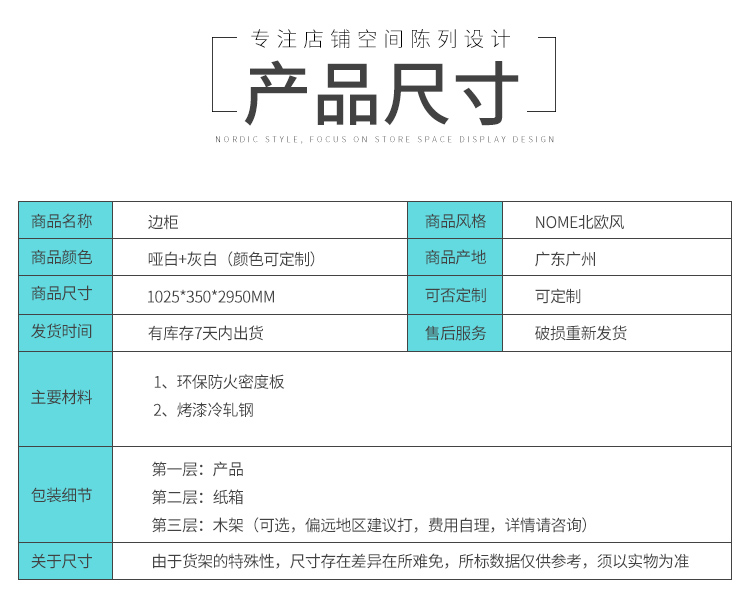 產品描述:極簡北歐風,增加儲物量、進店率。采用環保板材+穩定鋼架結構,讓人眼前一亮的感覺。