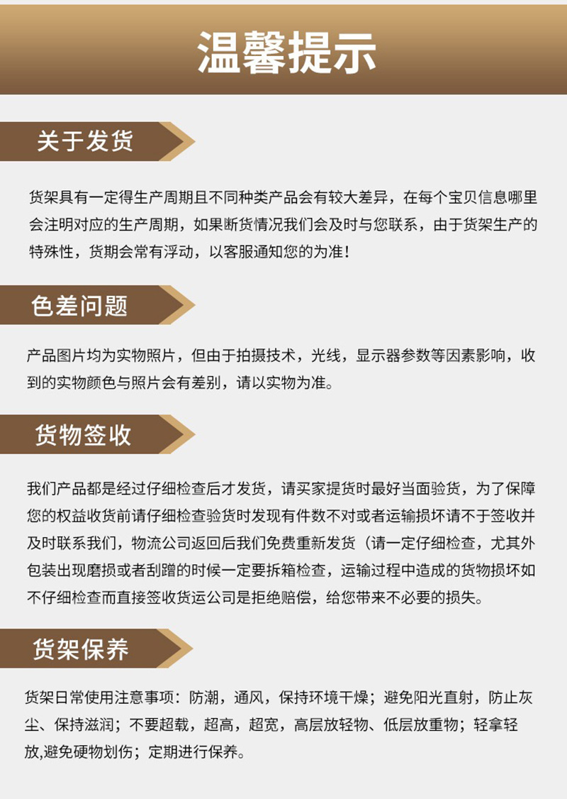 自有強大施工隊伍,提供現場專業安裝,有紀律、有標準的現場施工,直到客戶100%滿意,常規庫存產品24小時內發貨,整店定制產品5-15日交貨